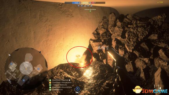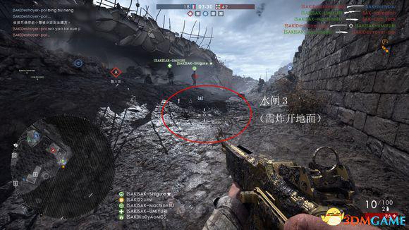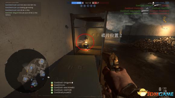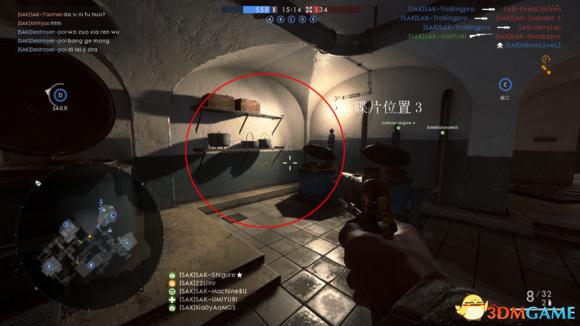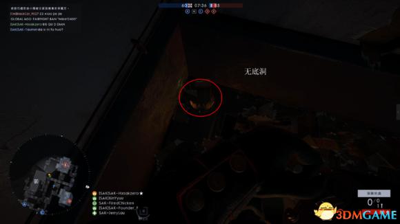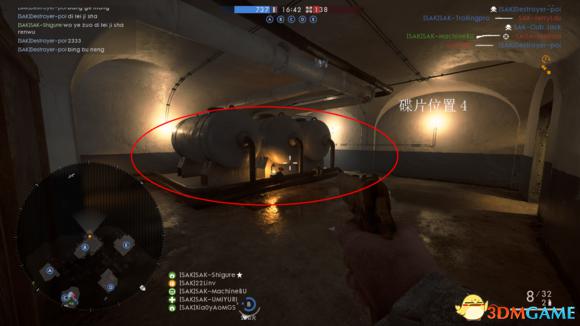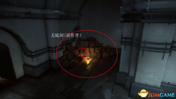 2.玩家需找到隐藏在B至E处的无底洞,并用破片(棒式)手榴弹向下投入并发生爆炸(没试过其他手榴弹)如图: