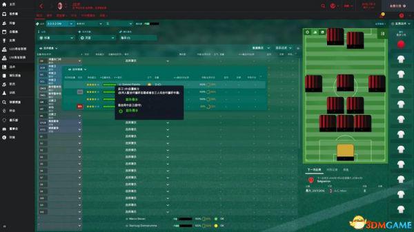概览中的球队阵容是比较核心的部分,你需要根据当前球员的能力去选择一个合适的阵型。