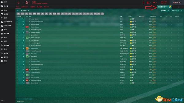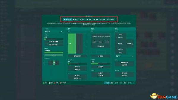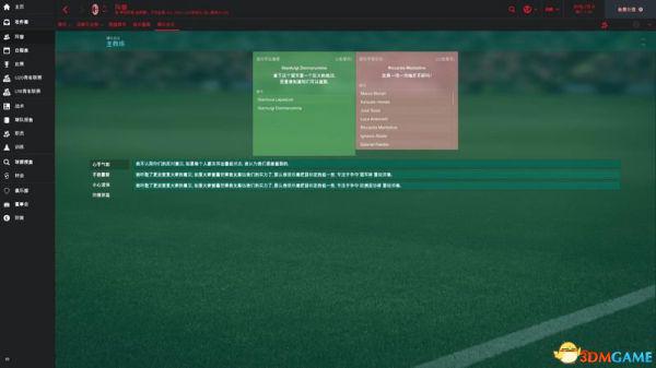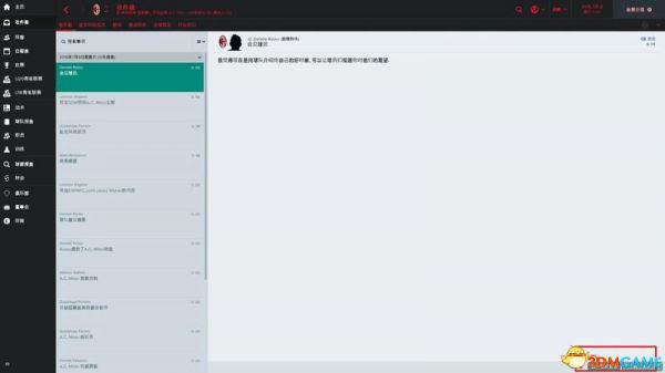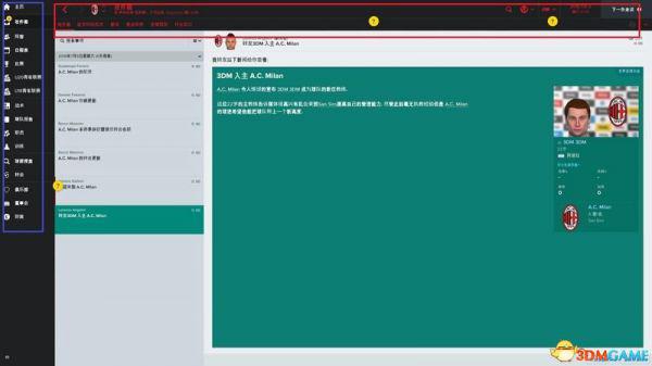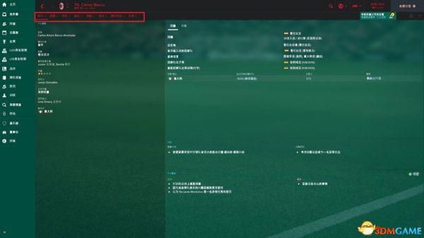 左侧蓝框内的功能导航栏和之前的足球经理版本功能一致,玩家可以参考之前给出的教程链接。