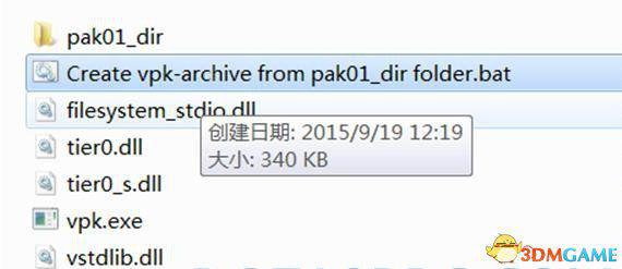 然后双击Create vpk-archive from pak01_dir folder.bat文件,打包工具就会自动生成一个pak01_dir.vpk文件