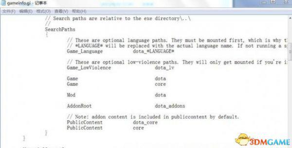 3、找到steamappscommondota 2 betagamedota目录下的gameinfo.gi文件,用记事本打开找到这样一段文字。