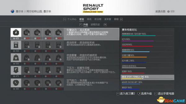 介绍——资源点数是供购买车辆升级研发的资本。你可以透过车手薪资、练习赛项目、赛事取得成绩来获得资源点。