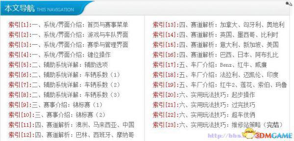 (以下是《F1 2015》图文攻略的目录)