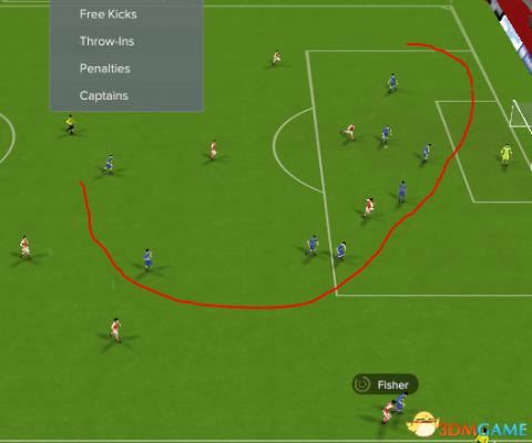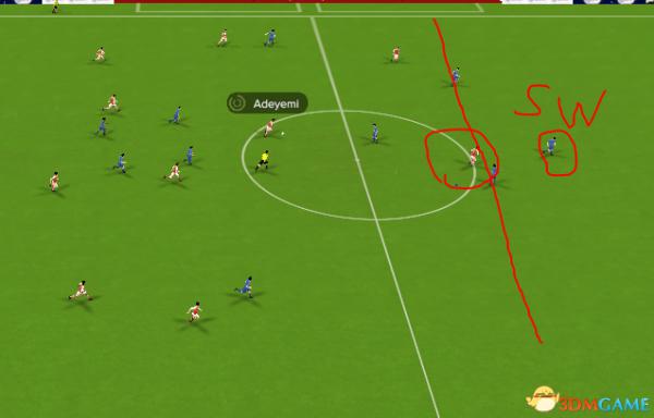 DM接到球后,两个翼卫+AMC压缩对面阵型,可以看到DM前方一片开阔,犹如指挥官运筹帷幄。