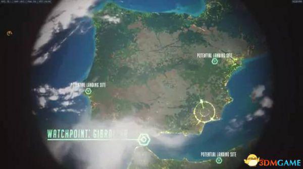 通过望远镜看到的是地球大陆,上面的四个点分别是三个“可能的着陆点”和一个“监测站:直布罗陀”,也许随着版本更新,“可能的着陆点”会渐渐变成其他新地图的名字。