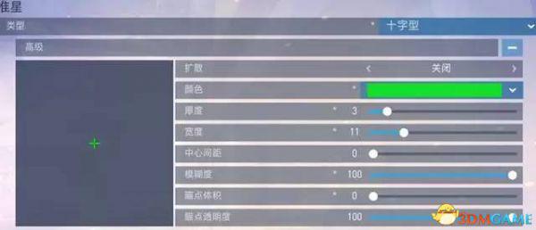 类型十字型、厚度3、宽度11中心间距0、模糊度100、瞄点体积0、瞄点透明度100