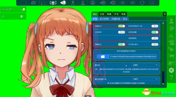 为了获得更好的使用体验,强烈建议设置红框中的三个选项。可以去掉FaceRig的LOGO和一些浮动提示,让视频整体更美观。