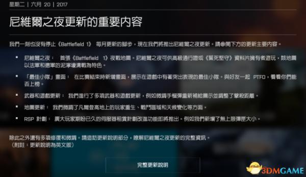 战地1夜战地图更新 战地1尼维尔之夜更新详情