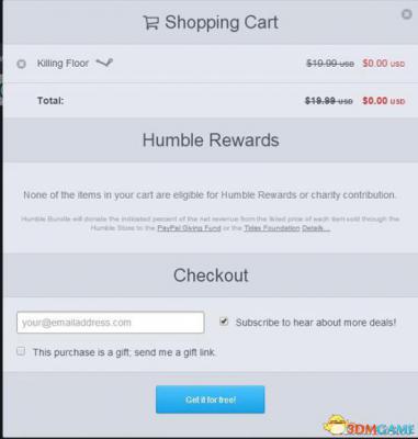 3.进入购物车,输入邮箱地址,旁边的订阅优惠可视个人情况勾选。之后点击蓝色Get it for free按钮。