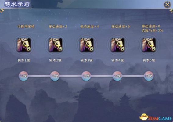 骑术是一种玩家角色的生存技能,其作用是使玩家能够驾驭相应的坐骑,以及提升骑乘时的效果(移动速度、抗落马率)。
