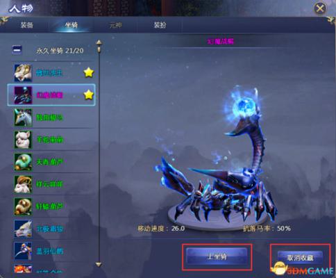①玩家可以在坐骑列表中选择要骑乘的坐骑,然后点击【骑乘】按钮即可。