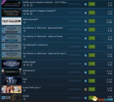 GTA5日常打折,我相信大多玩家早就已经入手了。黑魂3史上最低199元,下载一个修改器赶紧通关去吧。尼尔2B小姐姐现在288元,也算是终于便宜了,热衷于尼尔的一定不要错过。看门狗2,巫师3,幽灵行动荒野也有不同力度的打折。