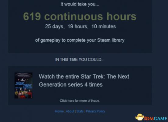 上面显示我的steam需要619个小时才能通关所有游戏,下面还有对比,相同的时间你还能做些其它的什么事情。