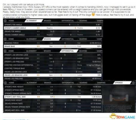 一直关注cm论坛老外喷尘埃4车开起来很奇怪的帖子,直到有人提出是cm把初始调教设置的太保守了,把玩家都当成了小白,所以初始比较推头,只需要调教一下车辆就能感受到比dr还要好的车身物理。