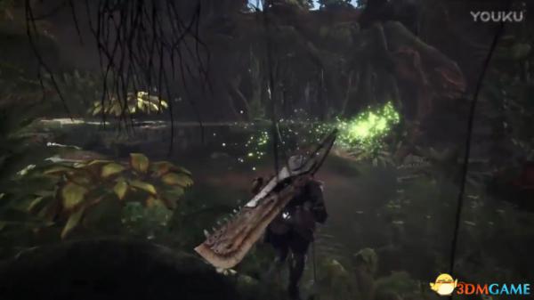 新作中最明显的新功能是类似萤火虫一样的“导虫”加入,导虫会提示你场景中的关键要素和怪物留下的脚印信息等,起到了引导指南的作用。该任务中调查蛮颚龙或雄火龙的足迹会加5分、调查树干上的痕迹会加10分,每只大型怪物的调查进度都有三个阶段,目测每20分左右为一个阶段,当积分升到了第三阶段(大概是40分)之后,导虫就会一路带你来到怪物的所在地,比起系列前作那种满世界找boss的开场改进不少。