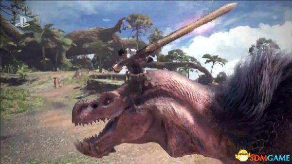 骑乘系统基本没变,新要素是骑在身上可以在蛮颚龙的头部、背部、尾部三个区域跳跃,怪物可能会将玩家甩出身上,此时可使用吊索立刻飞回来,这点在宣传视频中有所演示。在怪物背上的普通攻击只有1点伤害,在伤害达到固定程度之后怪物就会保持不动,此时在它背上可以使用蓄力斩,蓄力斩之后有个特殊的大剑纵向撕扯动作,随后怪物被击倒在地。