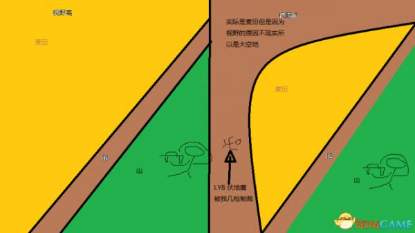 一直想不明白为什么 后来知道是视野的原因 稍微远一点的麦子不显示了。没截图,给大家画一下。
