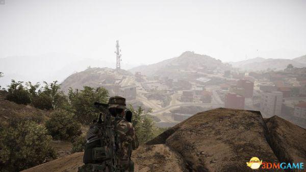 然后回头往直升机偏右的方向跑,在这个山坡边突出的石块上开镜
