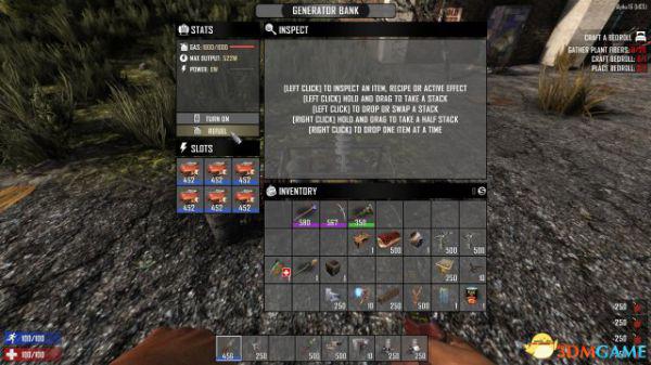 往发电机里面放入引擎、加满油,可以看到上面写着最大输出电力为522W,也就是说,如果下面的目前输出电力超过522W的话,就会停止运行或者损坏(没试过)