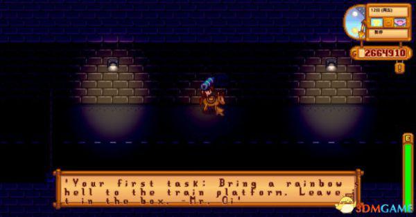 翻译提示:你干的不错,接下来你要把一个彩虹贝壳放入火车站的箱子,_——————齐