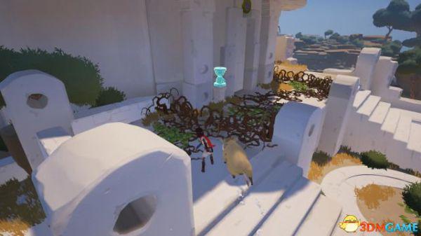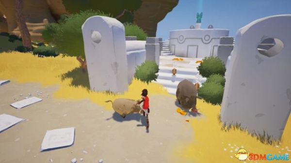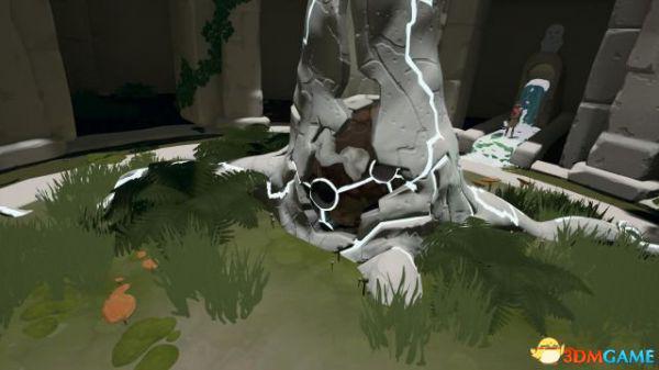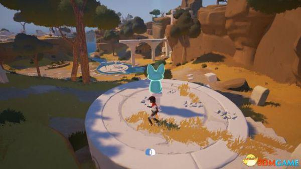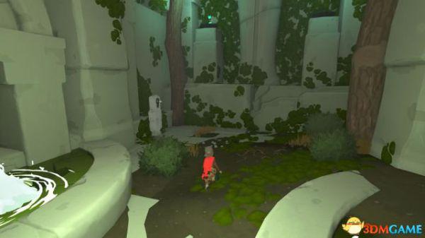 走上内陆时,你会看见岛上有一座巨型的圆柱体建筑物,顶部有一个匙孔图案。随之你可以发现低洼处有河水流经一个狐狸雕像,该雕像前方有四尊小雕像,此时你需要激活它们才能够释放小狐狸。
