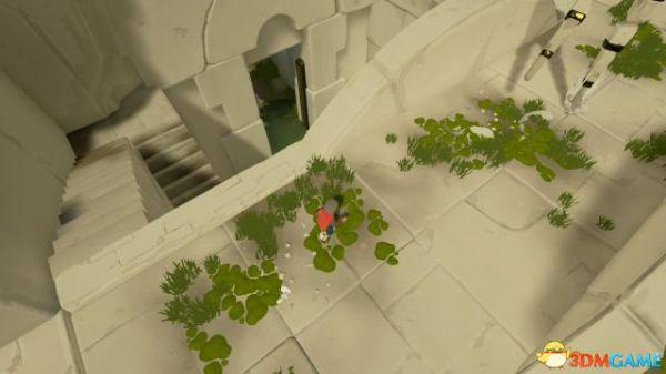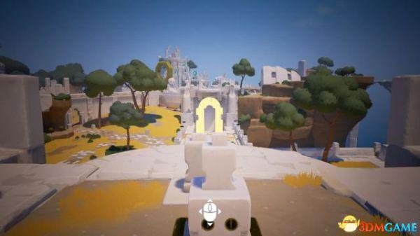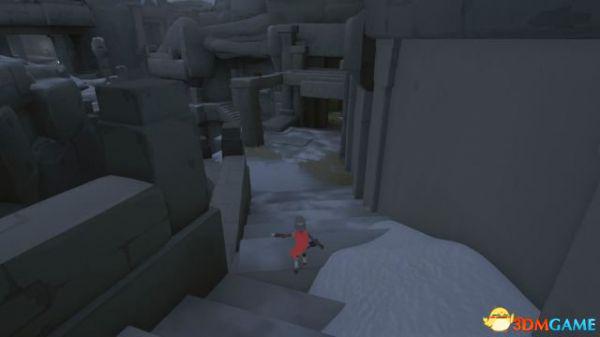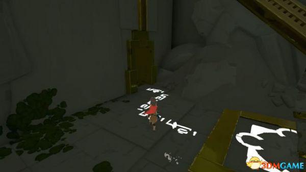 接着从山顶位置可以跳落到有两个地面标识的视角门框解谜上。