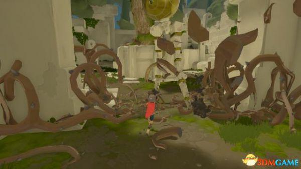 在场景中你要找出各处的拉扯装置,然后就可以去到最高的柱子上激活这里的雕像。