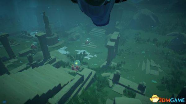 从右侧台阶上的鱼儿雕像处取得第二颗宝珠并带到左侧台阶顶部并暂时放在地面上。