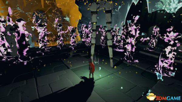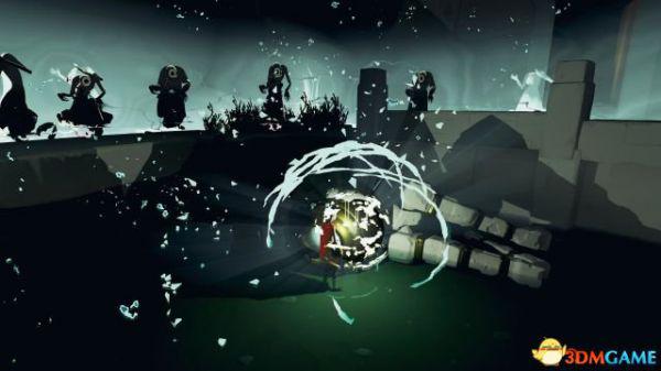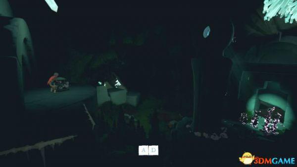 穿过阴暗通道时,需要让光珠配合机械人,才能够完全驱除这里的黑色人形怪物。
