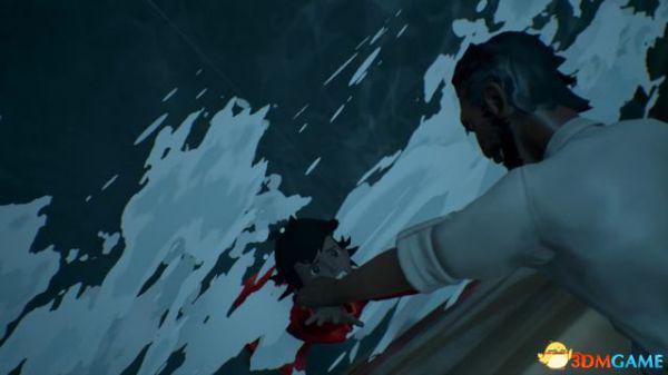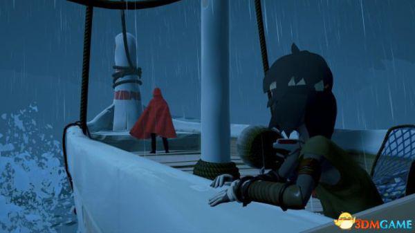 step11.你从异度空间醒来,如今依旧是惊涛骇浪,按W键,你试图上前触及红兜帽,可是他/她不慎从船舷上掉落,年幼的你无法抓紧红兜帽,仅仅是从其披风上扯下一部分。