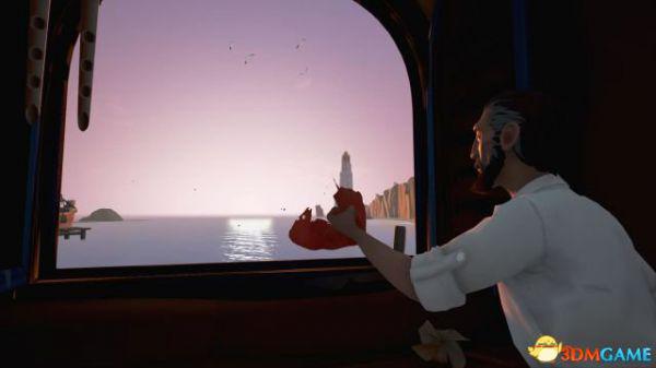 step12.此时镜头会强制要求你望向灯塔,但你使劲移动鼠标往之前第一个小雕像所在的门框上望去,你会发现一条光柱。