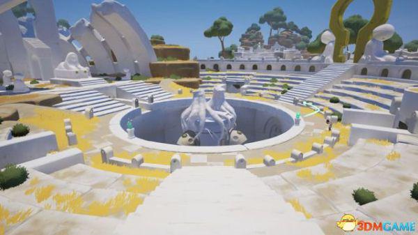 step1.来到一尊白色的狮身人面像前,你会看见有三个雕像控制着三眼喷泉,可是逐个雕像激活,每一眼喷泉出来的水量都很稀少。