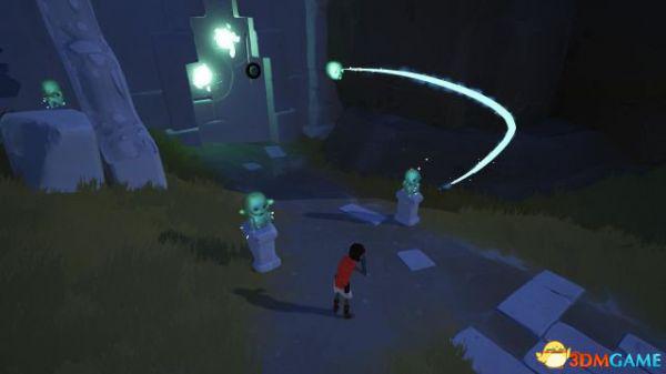step5.进入到灯塔庭院,你会发现一个跟你一模一样的小男孩雕像,而在他面前有四个小雕像,此时你要如同第一章那样激活四个散落在周围的雕像,然后释放此小男孩雕像。