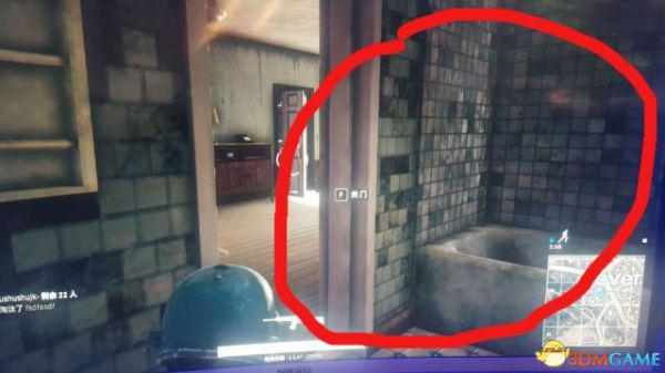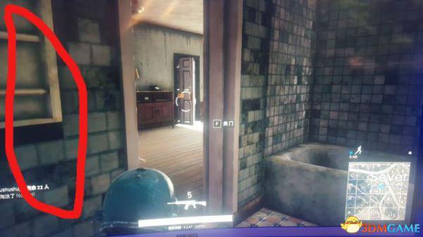 先看下面的1图(图上的操作是错误的,当时朋友的操作,这个位置能打到人的范围很小,只有进门一瞬间,如果没打到或者没打死,别人跑进来侧面了,就很尴尬了),这是游戏的设定,在第三人称模式下,你的人物模型永远在屏幕左下角,所以说你人物右侧的视野是最宽广的,正因为此特性,所以卡视野的方法基本都是利用图2的红圈视野来卡,而不是图3这种用左边,因为楼主没在电脑前不能上游戏给出一目了然的图片,所以只能靠大家实际操作体会,图3这种利用左边视野卡视野的方法用起来蹩脚不说,而且视野非常小,还需要鼠标移动到一个角度刁钻的位置才能看到大环境的冰山一角,所以不是在身位被限制的时候,千万别用图3那种方式,可能会反而把自己卡住。