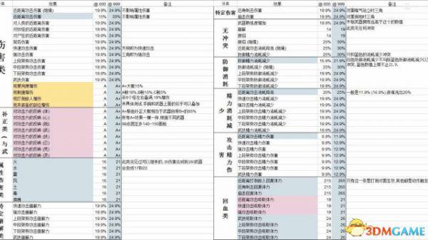 NOTE:以上全部数据都是999爱用度的情况下的数据......具体请参照表格。