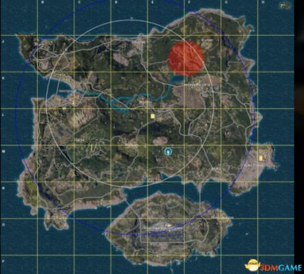 这里我简单给出一个判断思路,如图中所示,假如航线为GP→FE航线,跳伞不提前开伞的位置降落在航线左右两个以内,所以此次游戏中,机场,N港,防空洞,马蹄山,M城,Y城,遗迹,基本都会有1-2队,G港会是一个开车去捡东西发育的好地方,G城上城区和下城区也基本会有人前往。但是概率小很多。如图中所示,第一波圈在此位置,航线也确定,那么如果最后几波圈刷在DK点左右时,队伍在此圈的NW方向进入圈内,左右敌人会比较少,如果刷在FK点左右时,队伍在此圈的N方向进入圈内敌人会比较少。