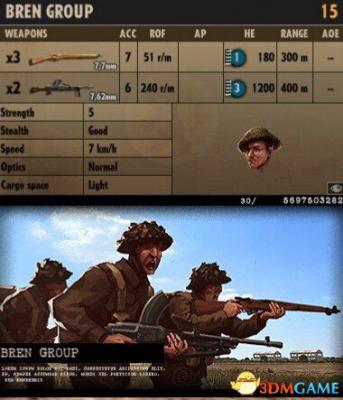 一般来说,有着双轻机枪配置的德国空降猎兵(上面第一位)这一类型的步兵并不需要额外再出重机枪小组-因为他的远距离火力和压制火力已经足够。而只装备了一挺布伦的英 军步枪兵则更需要有Bren Group(布伦小组,见下图)或者维克斯机枪小组配合弥补远距离的火力以及压制力的不足。至于另类的美 军,因为步兵班不装备轻机枪,必须出Arm LMG Rifles(陆军轻机枪步兵班,见下图)或者M1917 HMG(M1917重机枪组,见下图)来补充远程火力,但是目前的第三装甲师全员M3了也就不存在这个问题了。