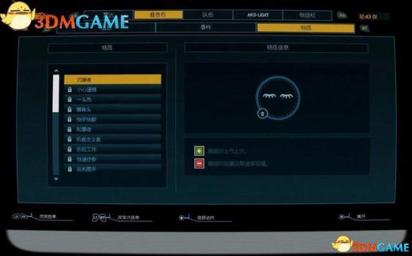 如图是队员的特质菜单。你可以把不同的特质分派给队员,控制他们各自的职责。