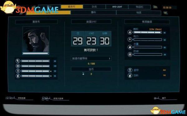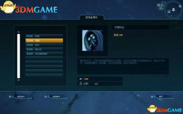 在右边列出每个事件的信息,完成这个事件需要哪些物品,下方显示完成该事件获得的救援点数。如果时间有限,显示余下多少时间。