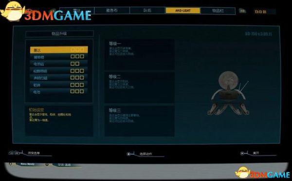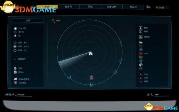 如图是雷达菜单。你可以在雷达上看到周遭的环境,以及任何你发现的事物。将Ako-Light升级,会让雷达变得更有用。