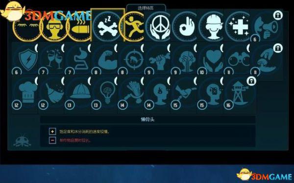 此处显示每项特质的状态,你可以看到还需完成哪些条件才能解锁,以及该特质的效果。
