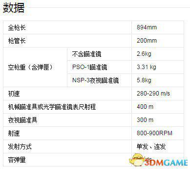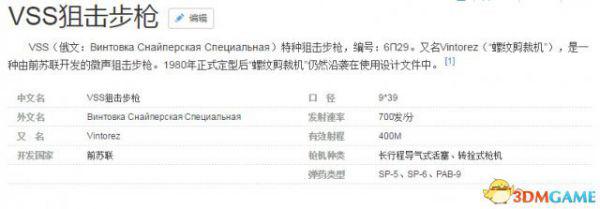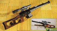 历史:VSS Vintorez是一种微声,几乎无发射火焰的近距离狙击步枪,使用9x39毫米弹药。