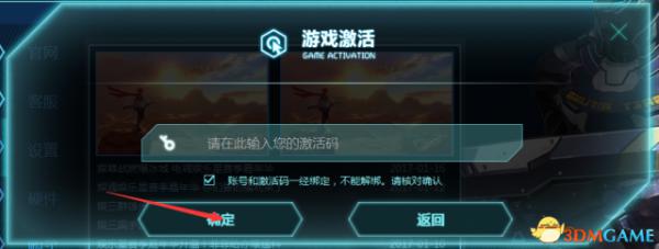 接着会跳框让您输入激活码,输入你购买游戏后获得的激活码,然后在下面打钩,即可点击确定,进行激活游戏的操作,