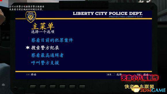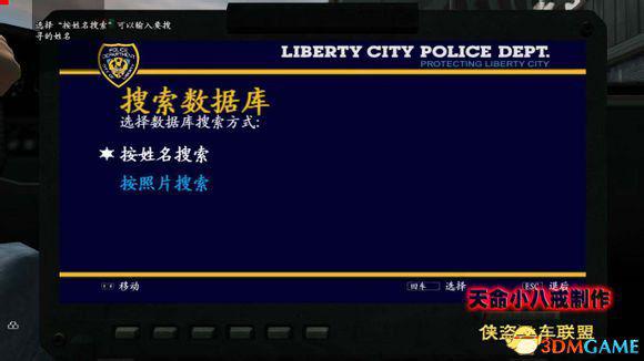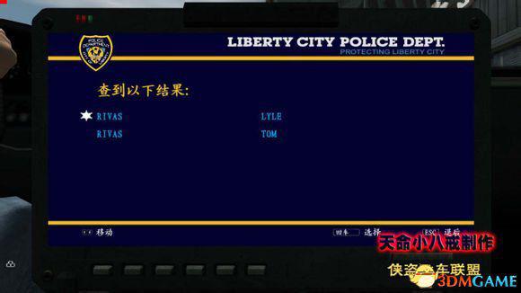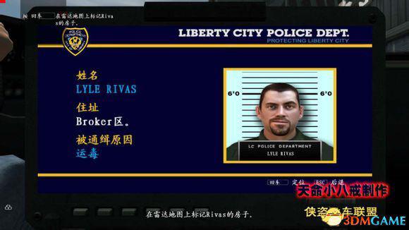 接着会打电话给Brucie,会告诉你找Lyle Rivas这个人。按“E”进入警方电脑,选择第二项“搜索警方记录”,选“按姓名搜索”,直接用键盘输入“Rivas”或者你用游戏给你的虚拟键盘输入也可以,搜索出两个选项都是 Rivas,选择“Lyle Rivas”这个选项,确定目标人物,按“回车”键定位。按“ESC”退出警方电脑。
