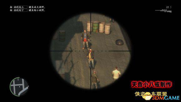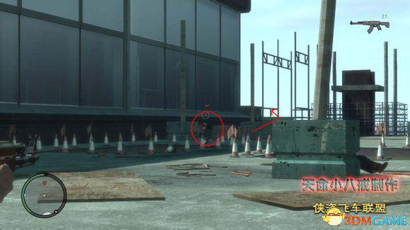 然后就可以进入工地了,过马路沿着工地顺时针走就能看到入口。接下来就是需要枪战了,目标是杀掉工会首领,第一个目标在入口处建筑的脚手架上,工地上有不少持有武装的工人会向你开火,如果你站的远,他们都会自己跑过来。