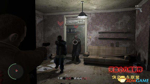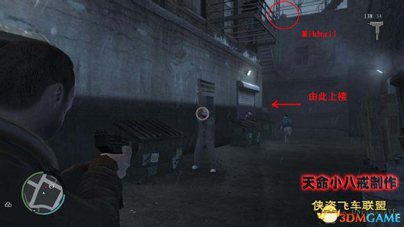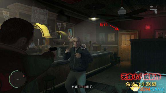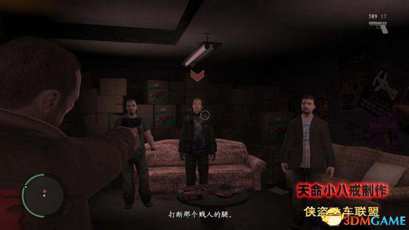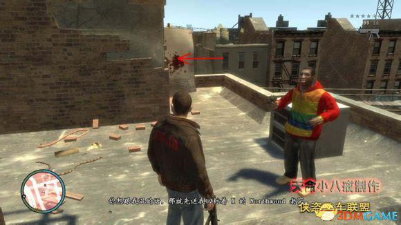 杀死从后门逃出来的3个喽啰,在GTA 4里的一个改动就是和前作相比,在车内进行射击也会有准星,可以自由瞄准了,另外就算是坐在车内也会被敌人的子弹攻击到(就算是防弹车也是车防弹,人不防弹)。