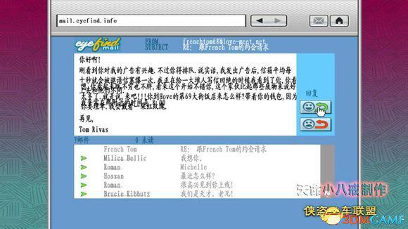由于是分段任务,所以中间有很长一段可以自由行动的时间,随便干些什么,最简单的就是回安全屋睡觉。然后Roman会发来一个提醒去网吧看看的短消息,之后就可以再次来到网吧,查看自己的邮件,发现目标人物已经发来了邮件,回复这封邮件以后,就会有约会时间安排。