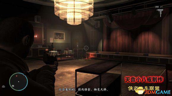 按“E”离开座位,然后拿出武器射杀目标人物。不过我喜欢听完所有对话,目标人物就会逃跑,追上他杀掉也没什么问题。