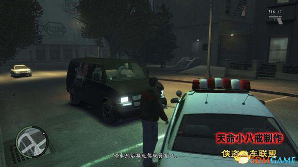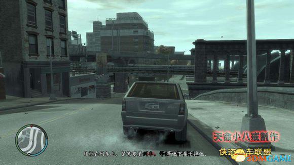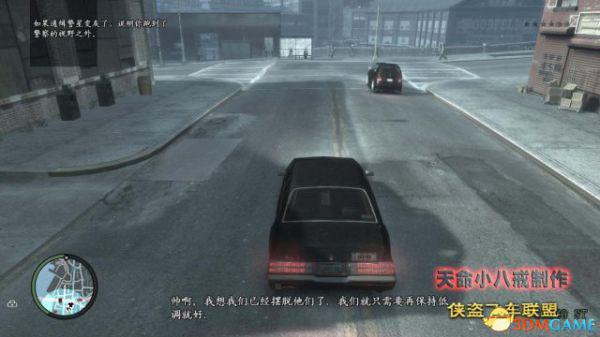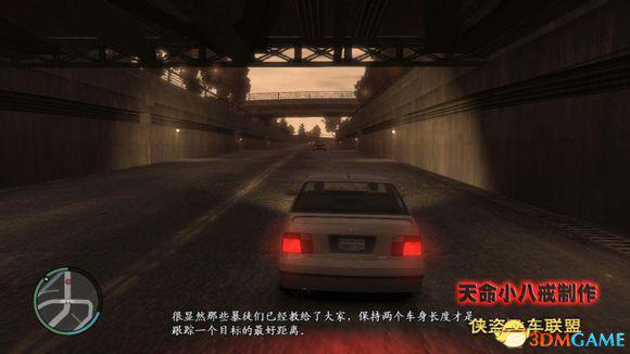 跟踪他到达他的老巢,这是第一个车辆跟踪的任务,关键是保持车距,游戏中说以两个车身距离为佳,实际上更远一些比较好,不跑出小地图就行了,有小地图根本就不怕跟丢,太近了反而不好。