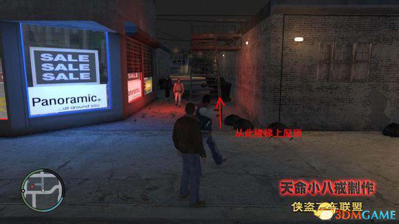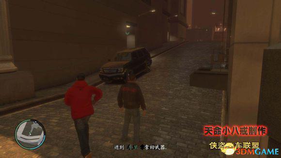 到达目的地后Little Jacob下车,Niko到小巷里作为后备手段。